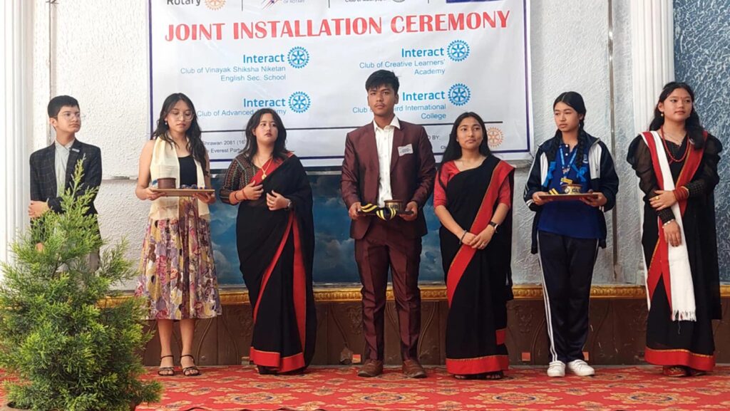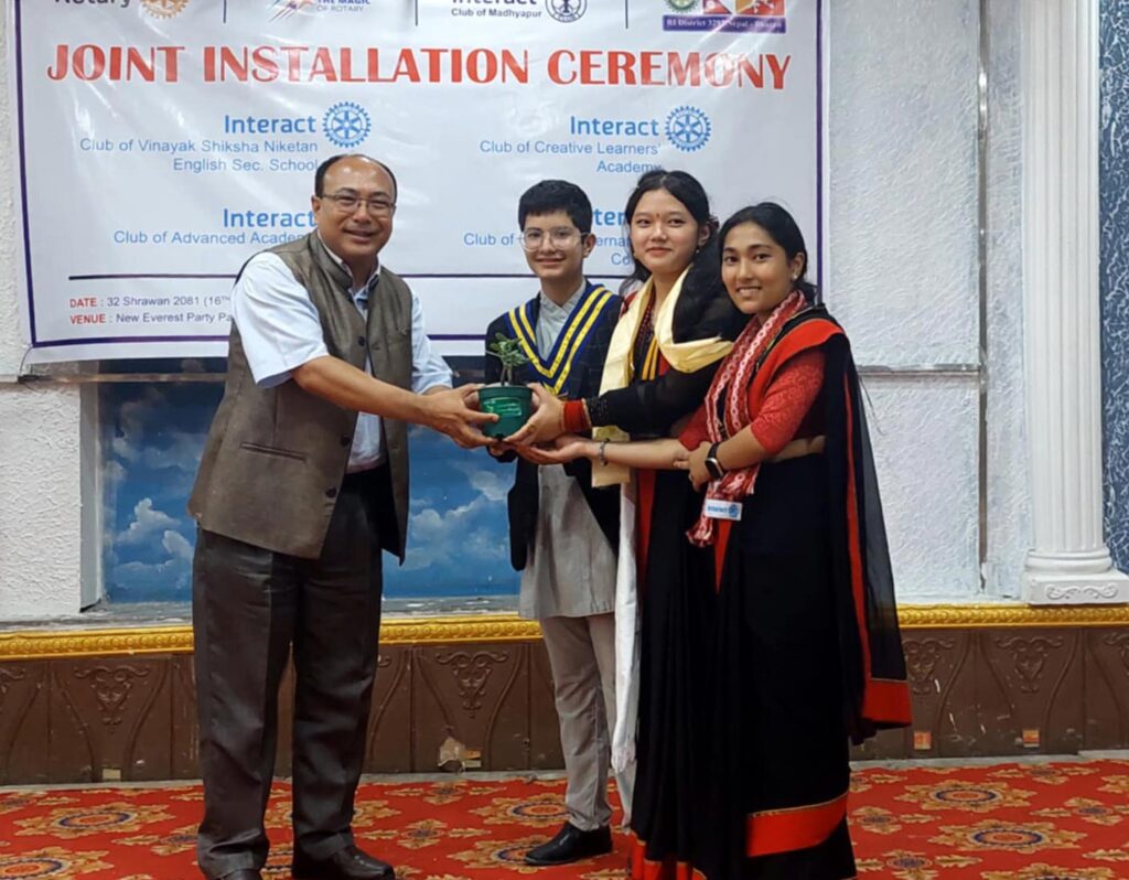 The Interact Club of Madhyapur conducted its installation program on August 16, 2024, with Rotarian Gita Prasad Nepal, the President of the Rotary Club of Madhyapur for 2024/25, as the Chief Guest. The event also included the installation of the Interact Clubs of Vinayak Shiksha Niketan, Advance Academy, Creative Learners Academy, and Seabird International College, bringing together young leaders from these institutions to kick off their new term.